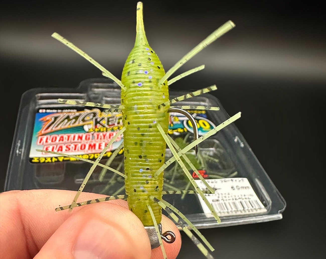 Innovativt stick bait från japanska Geecrack med grov kropp och tunna silikonspröt som pekar åt alla håll. Tillverkat i Elastomer-material. Flytande och slitstarkt. Strong Shrimp Flavor. Kasta ut, låt din Imo Kemushi sjunka till botten, när jiggen når botten så ställer den sig rakt upp så abborren enkelt kan plocka upp den. Fiska hem din Imo Kemushi sakta, med långa stopp. Detta fiske har visat sig otroligt effektivt både på abborre och gös men det är inte ovanligt att stora gäddor tar dessa maskliknande beten. Imo Kemushi är enkel att modifiera, ibland är det otroligt effektivt med en mindre NED, framförallt när abborren är trög, då är det bara klippa av den i valfri längd. Tacklas bäst med en Ned-skalle i storlek 1/0-2/0.