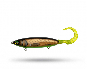 Efter många försök och åtskilliga prototyper så kan jag äntligen presentera Tornedals Tailen. Ett väldigt mångsidigt bete beroende på vilken tail man har. Den levereras med en curly tail och gör den till ett riktigt fint jerkbait. Byt ut tailen mot en paddel tail så får du en fin vaggande gång på betet. Eller varför inte sätta en gigant big tail för att få ett riktigt fint, stor profils bete? Som sagt så har detta bete en massa olika egenskaper. Den är viktad slow sink och kan fiskas väldigt grunt. Och vill man få ner den så sätter man enkelt en snap-on weigt i betes låset för att få den att går djupare. Begränsad antal! Mer information
